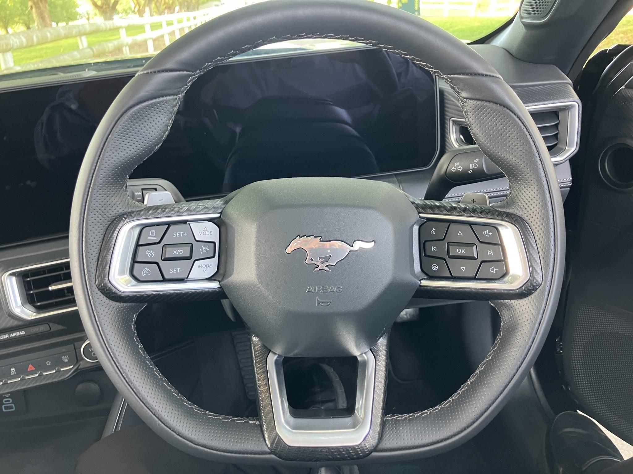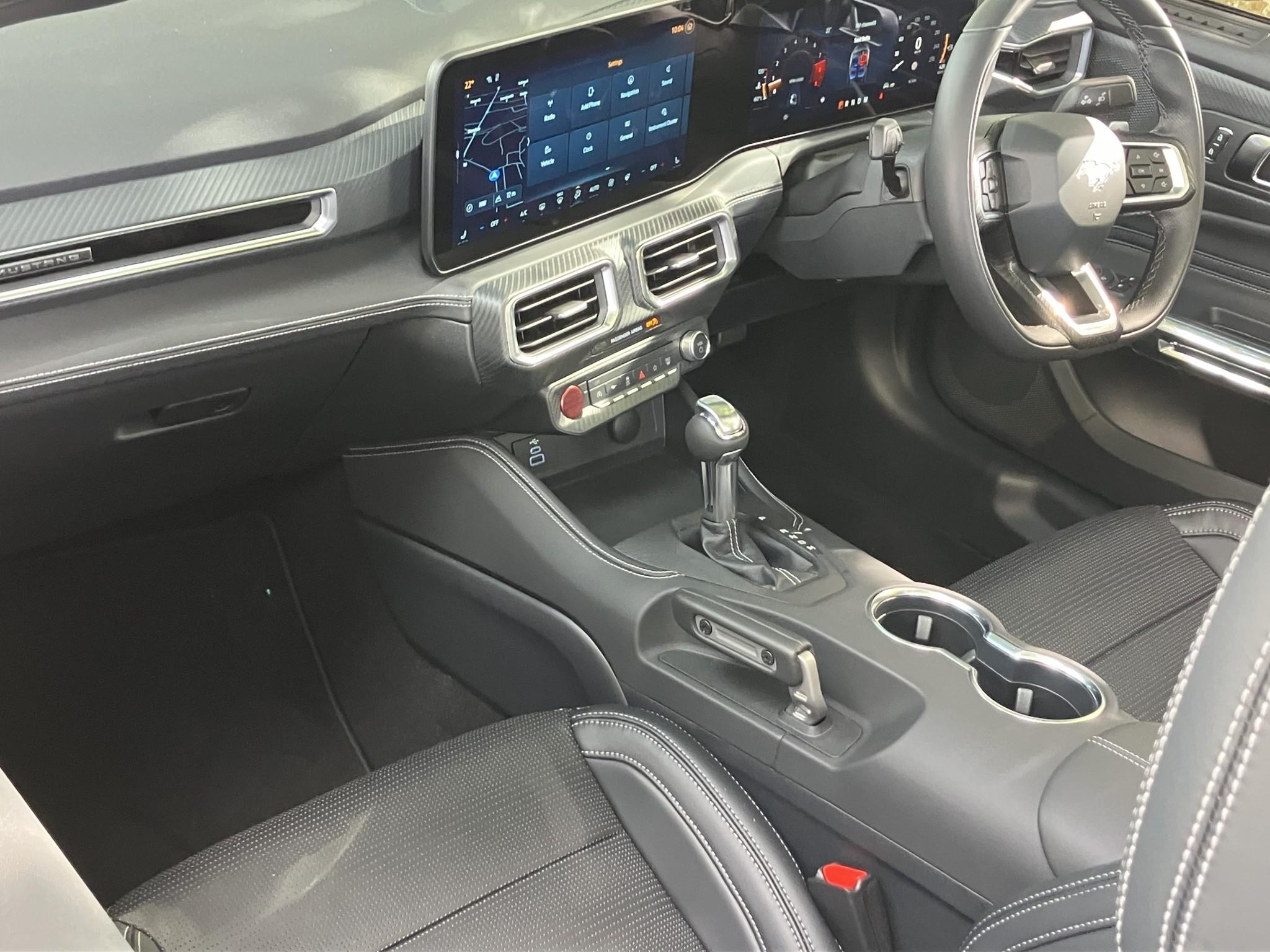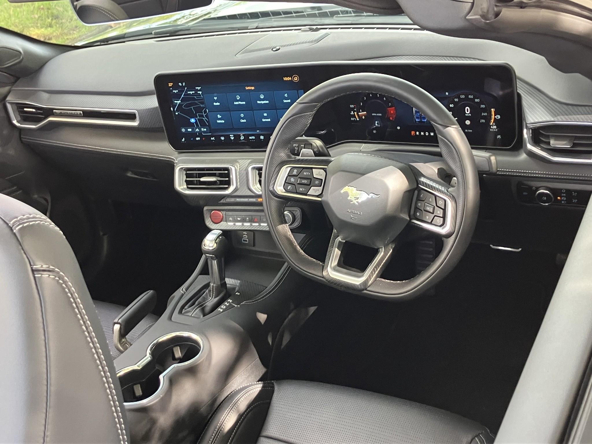 | Excitement starts from within Sitting in the driver's seat feels less like being in a car, and more like a fighter jet. Twin screens before you, controls at your fingertips and a dark cocoon of comfort all around. On-screen, every pixel counts, with endlessly customisable displays and unique drive mode-specific visuals to give you a fully immersive experience. Wrap-around screen Everyday driving transforms into a visceral experience with a magnesium-framed 13.2-inch centre screen, angled towards the driver. Sound all around The Bang & Olufsen1 12-speaker sound system, including subwoofer, feels like being at a live performance. Connected to the world Wirelessly integrate your mobile with Apple CarPlayTM 2 5 and Android AutoTM 2 5. No more tangled cords, just a sleek, uncluttered interior. Peak performance on any road Selectable drive modes4 allow you to automatically adjust steering feel, throttle response, exhaust volume and electronic stability control to suit every drive. On-screen, unique animations and cluster appearances, powered by the same Unreal Engine 3D software used in video games, accompany each drive mode. Sounds like a muscle car should The quad tip exhaust with active valve functionality6 lets you control the volume of your Mustang - although it's hard to resist the raucous V8 growl of the sport setting. Customise your cockpit The display incorporates a fully-customisable 12.4-inch digital cluster that allows you to decide what information is displayed. |